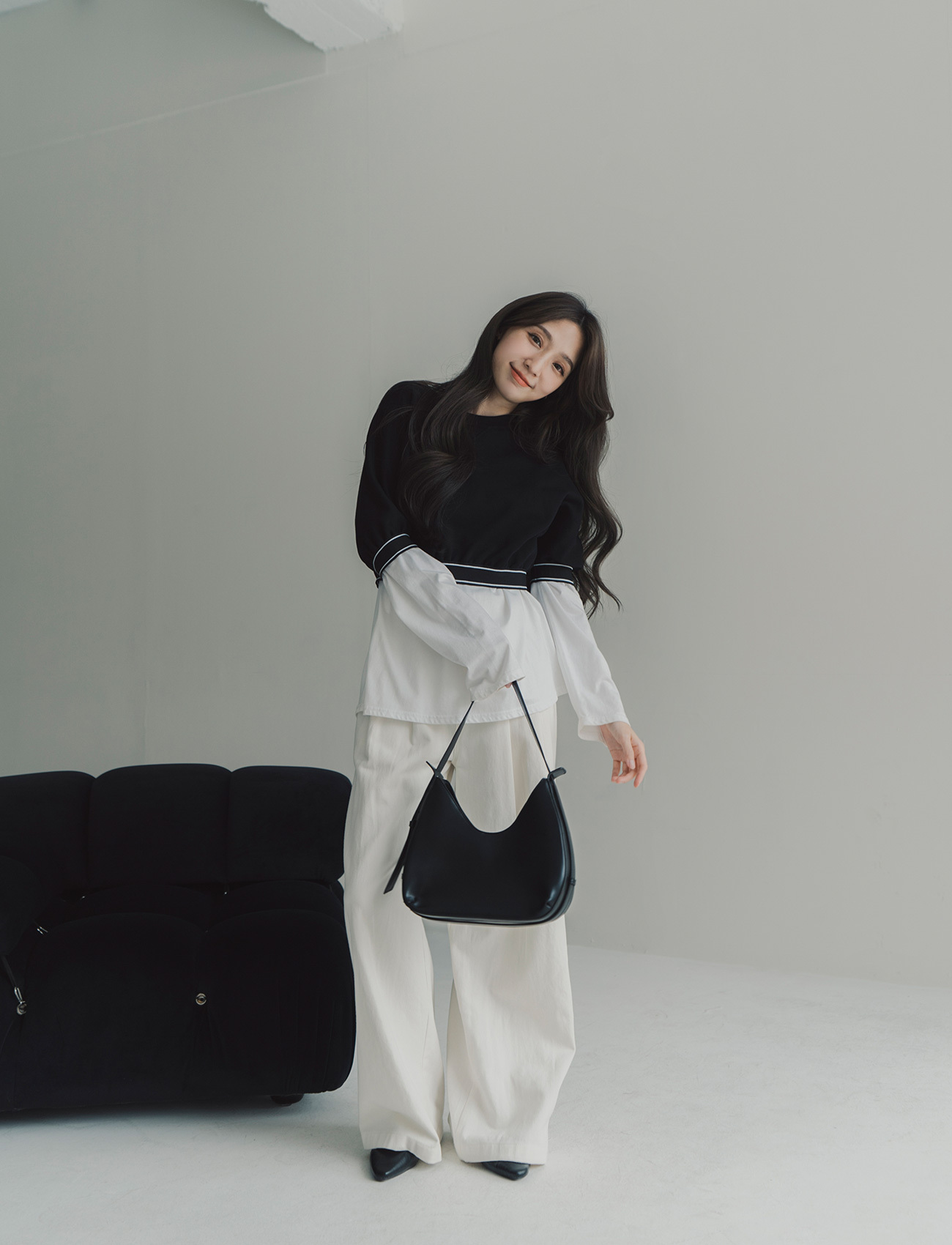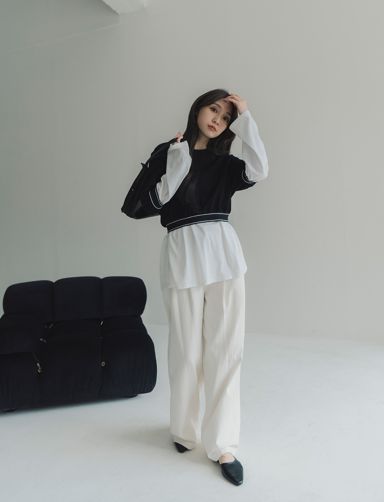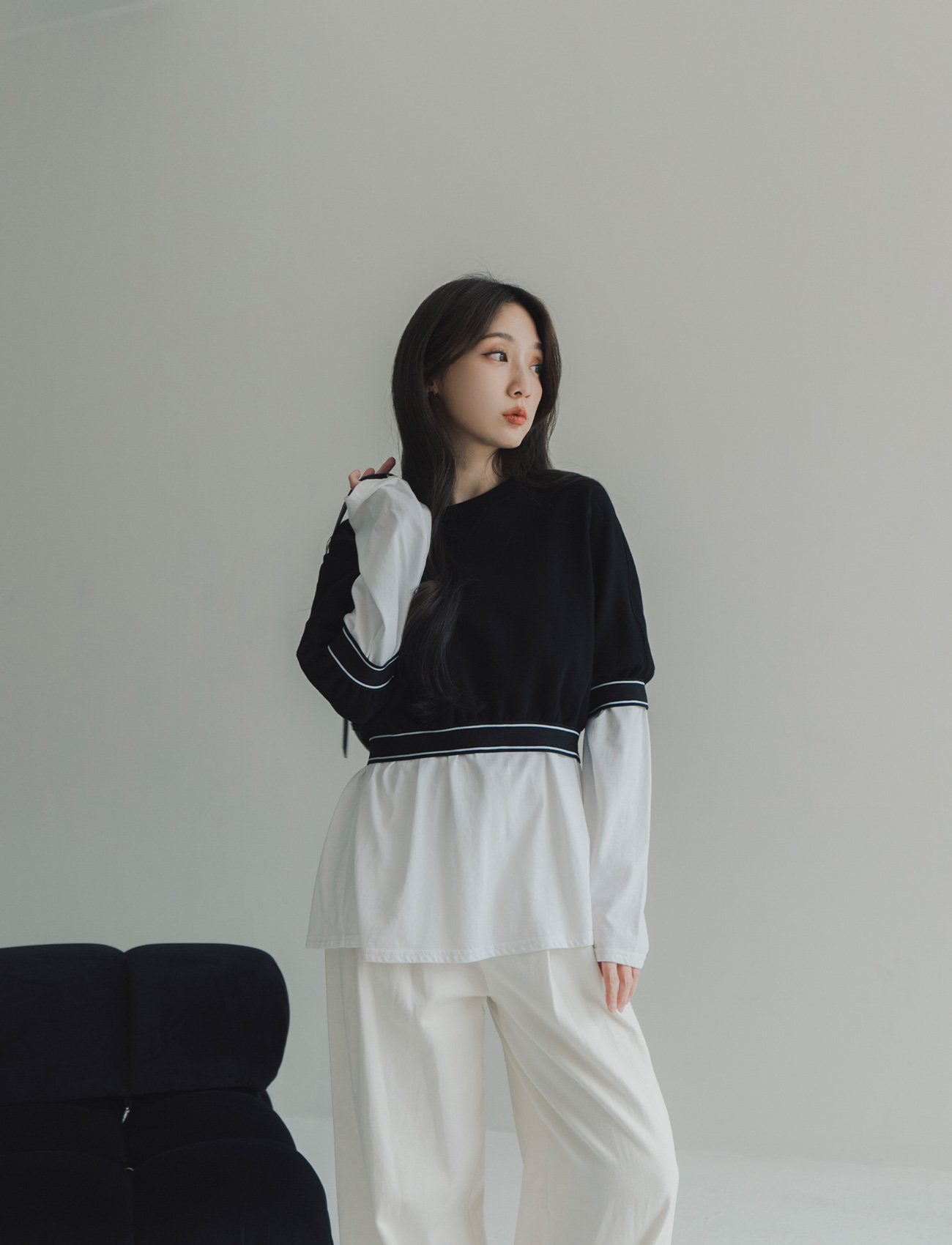 下拼接鬆緊上衣