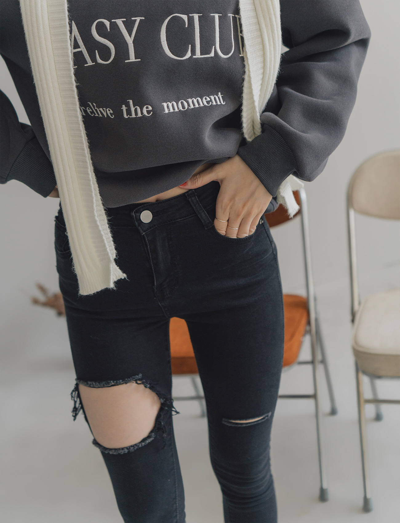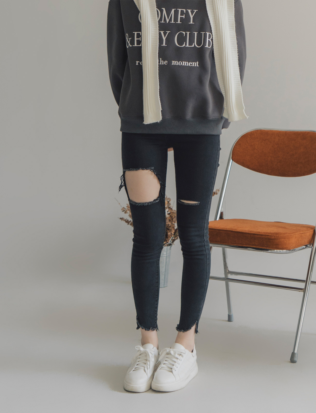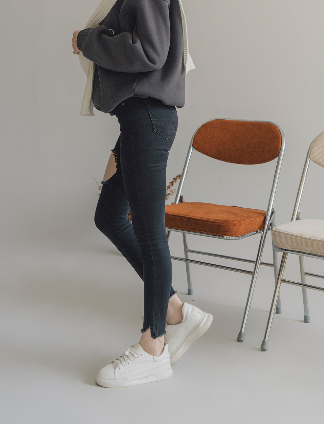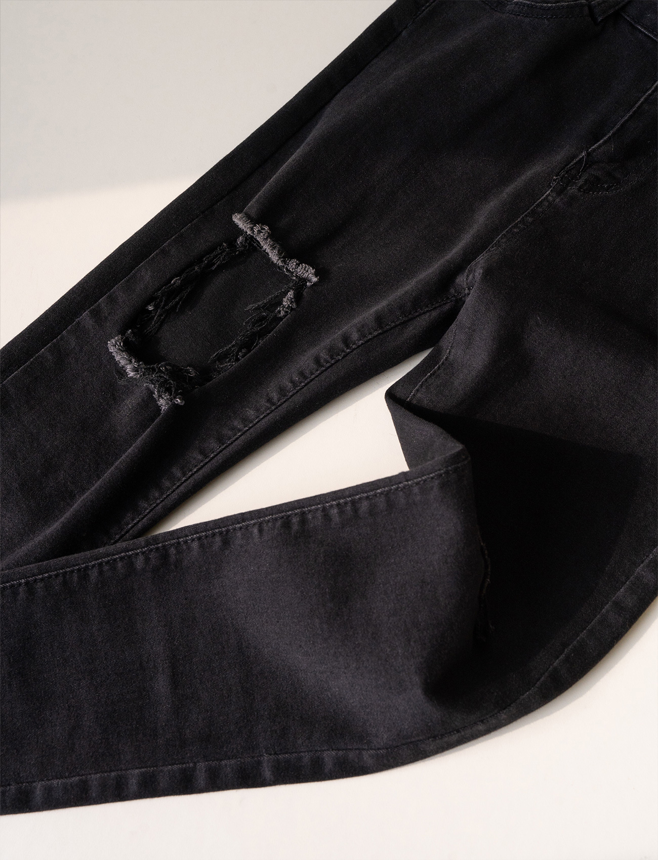不修邊破洞牛仔褲