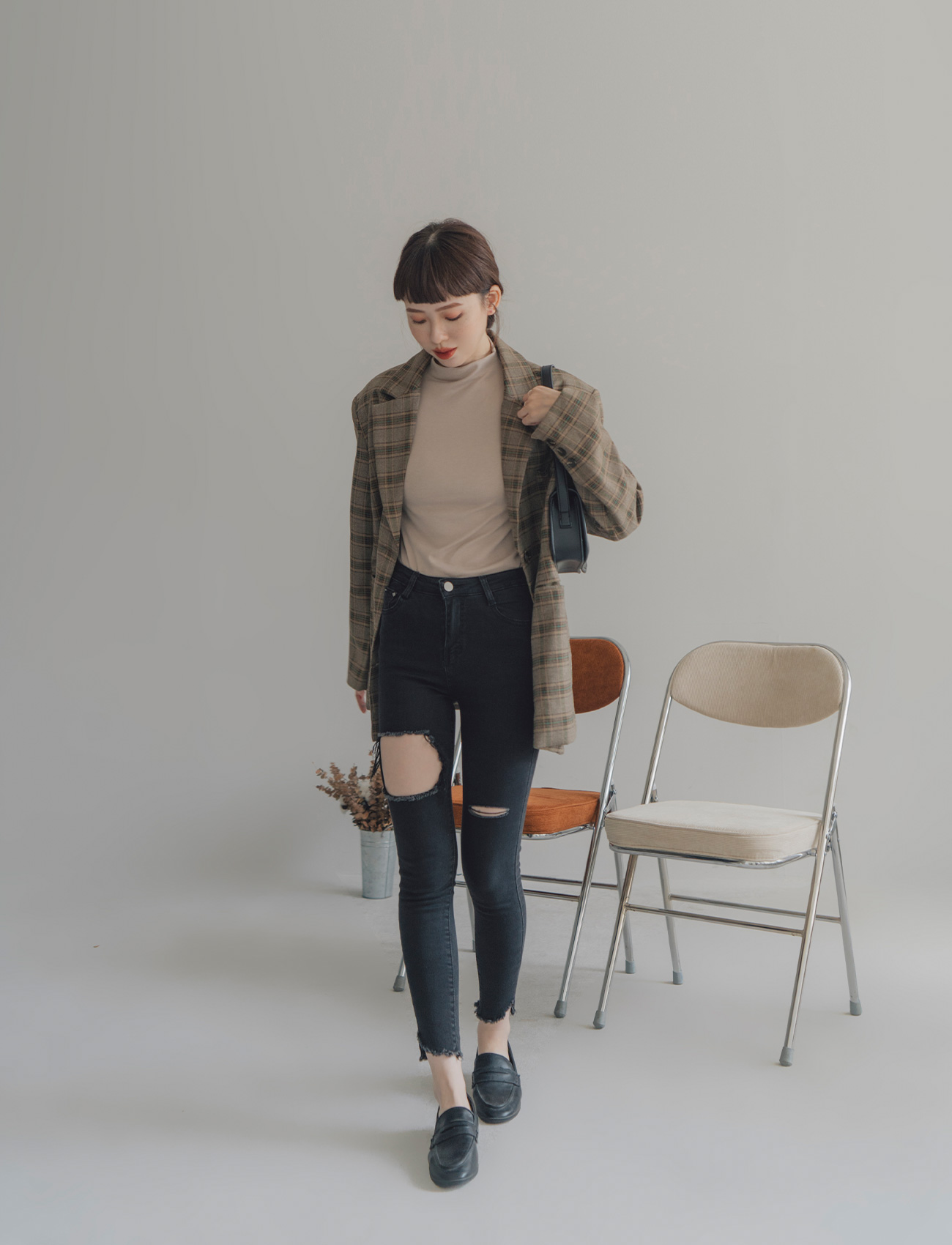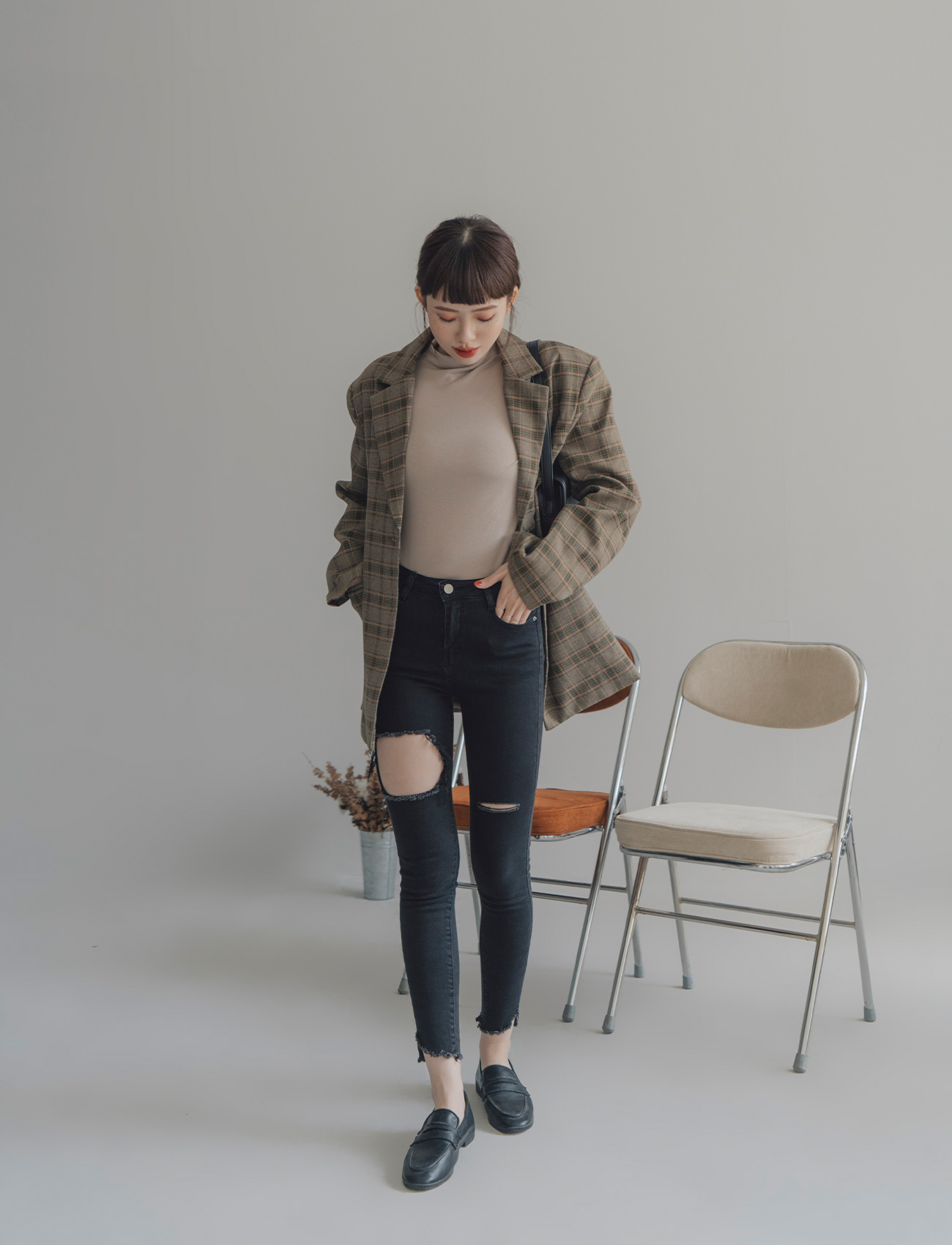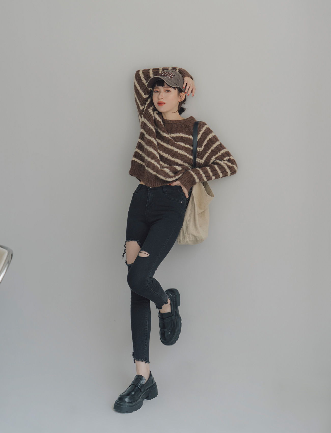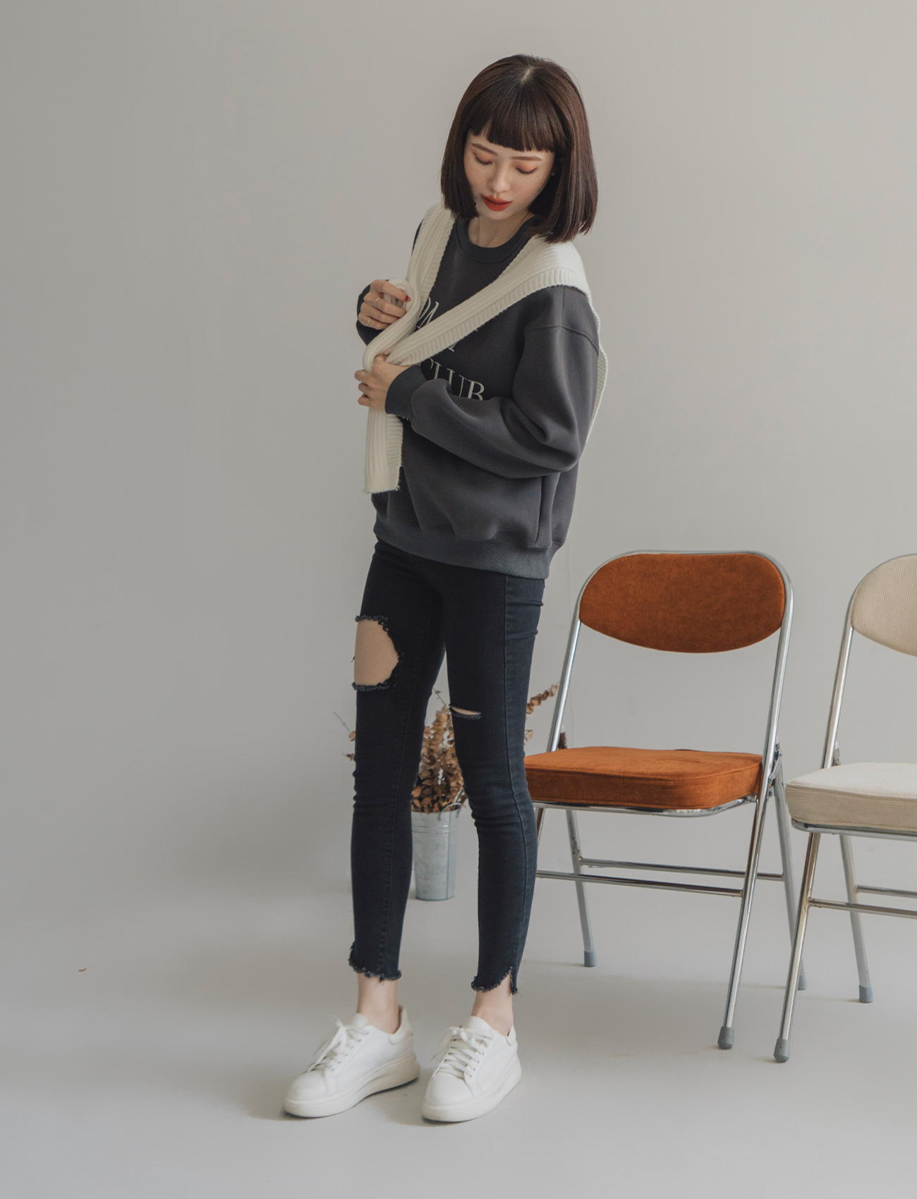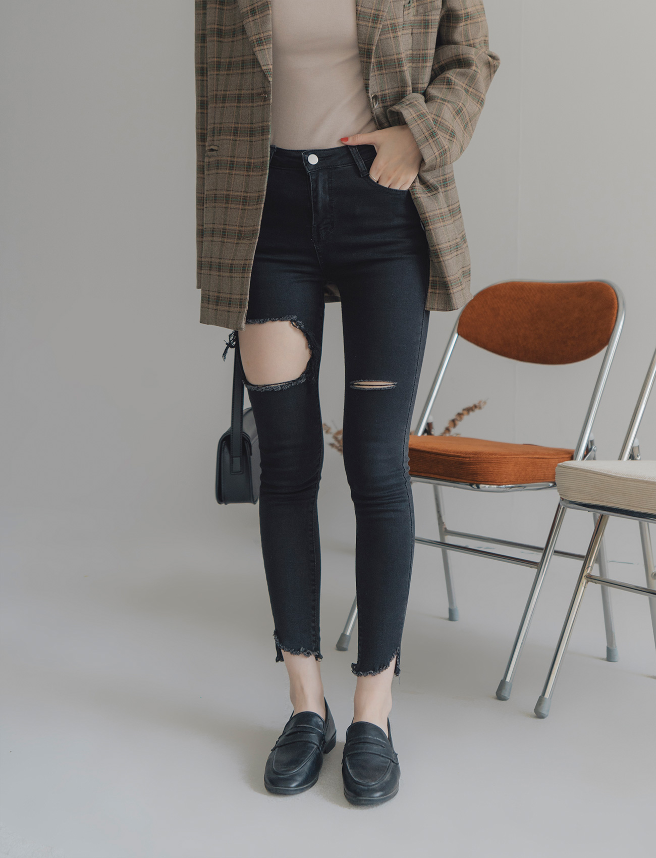 不修邊破洞牛仔褲