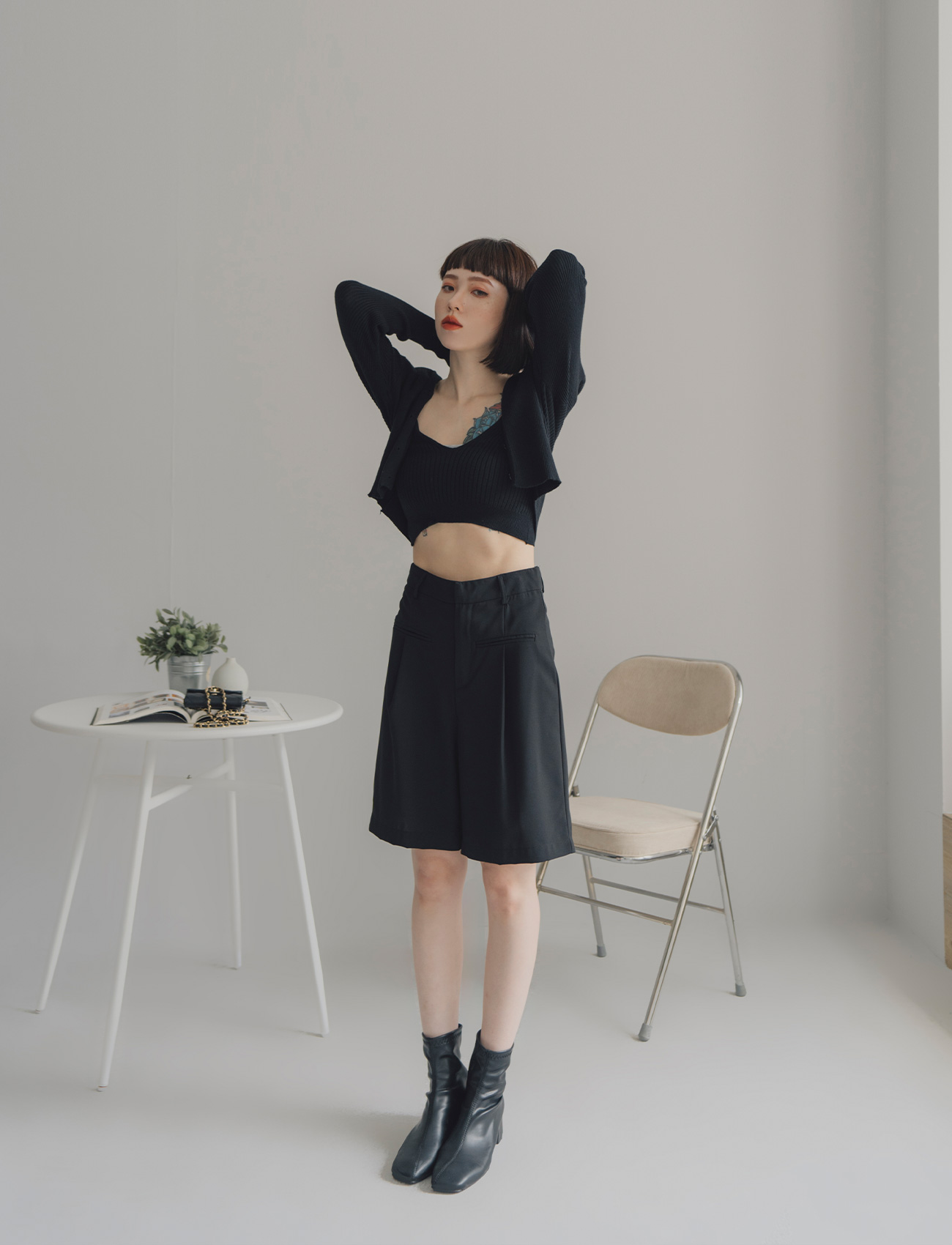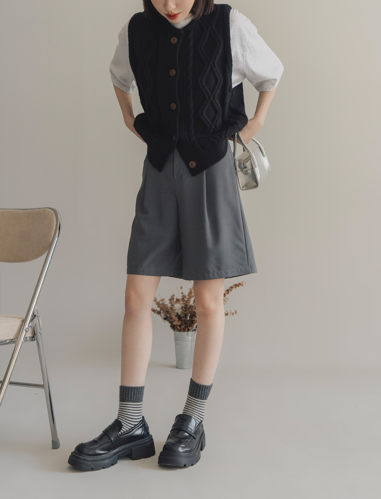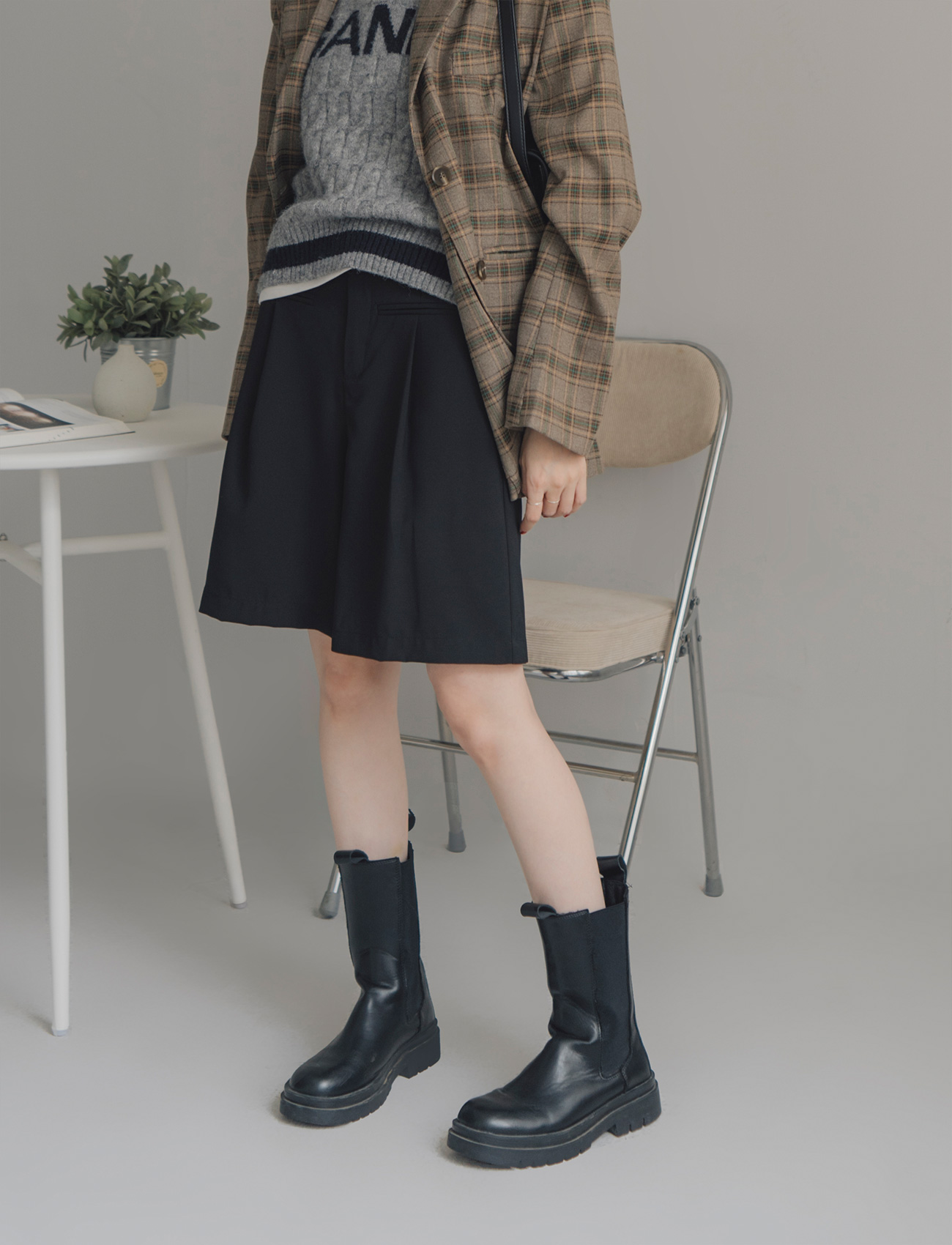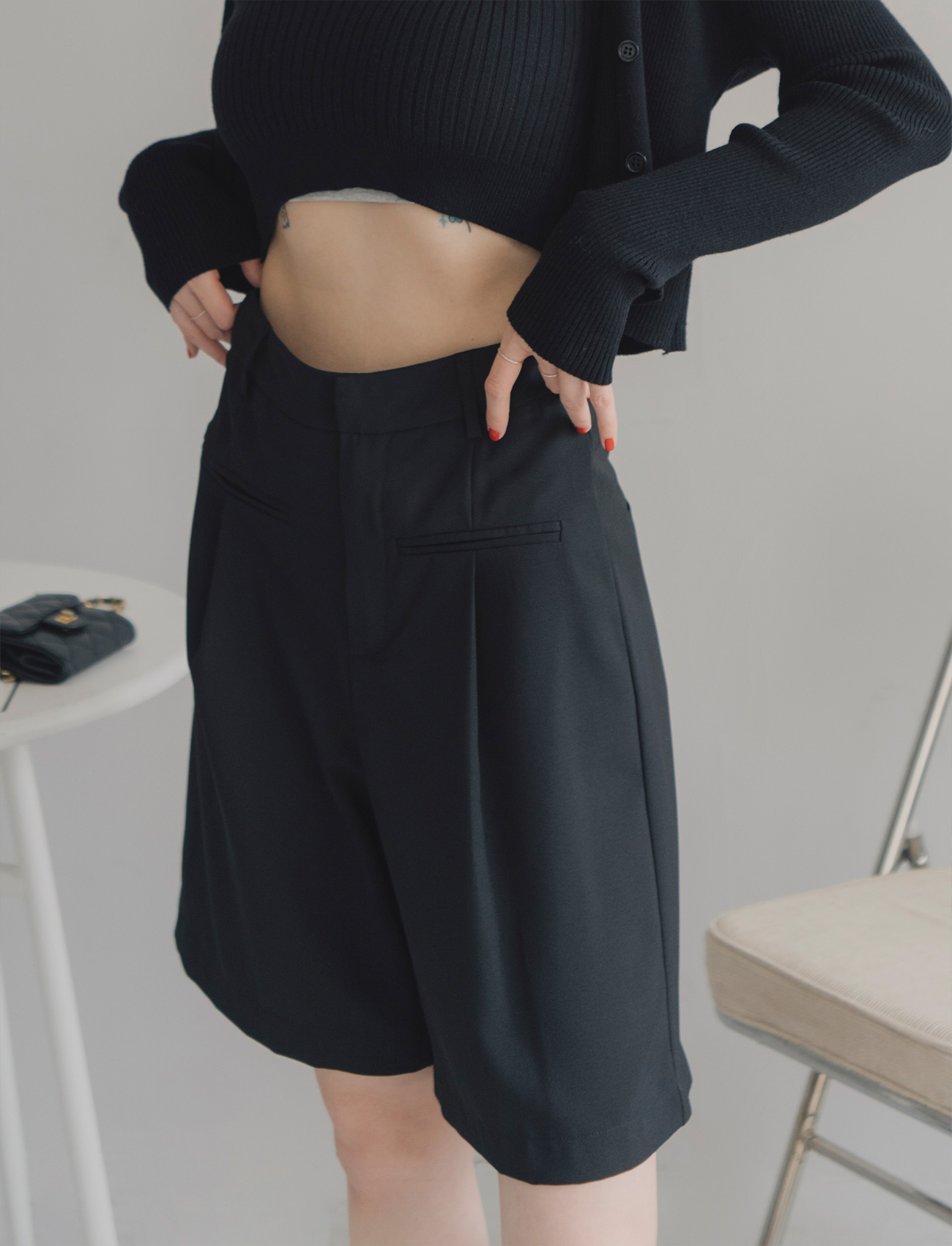 假口袋打摺西裝短褲
