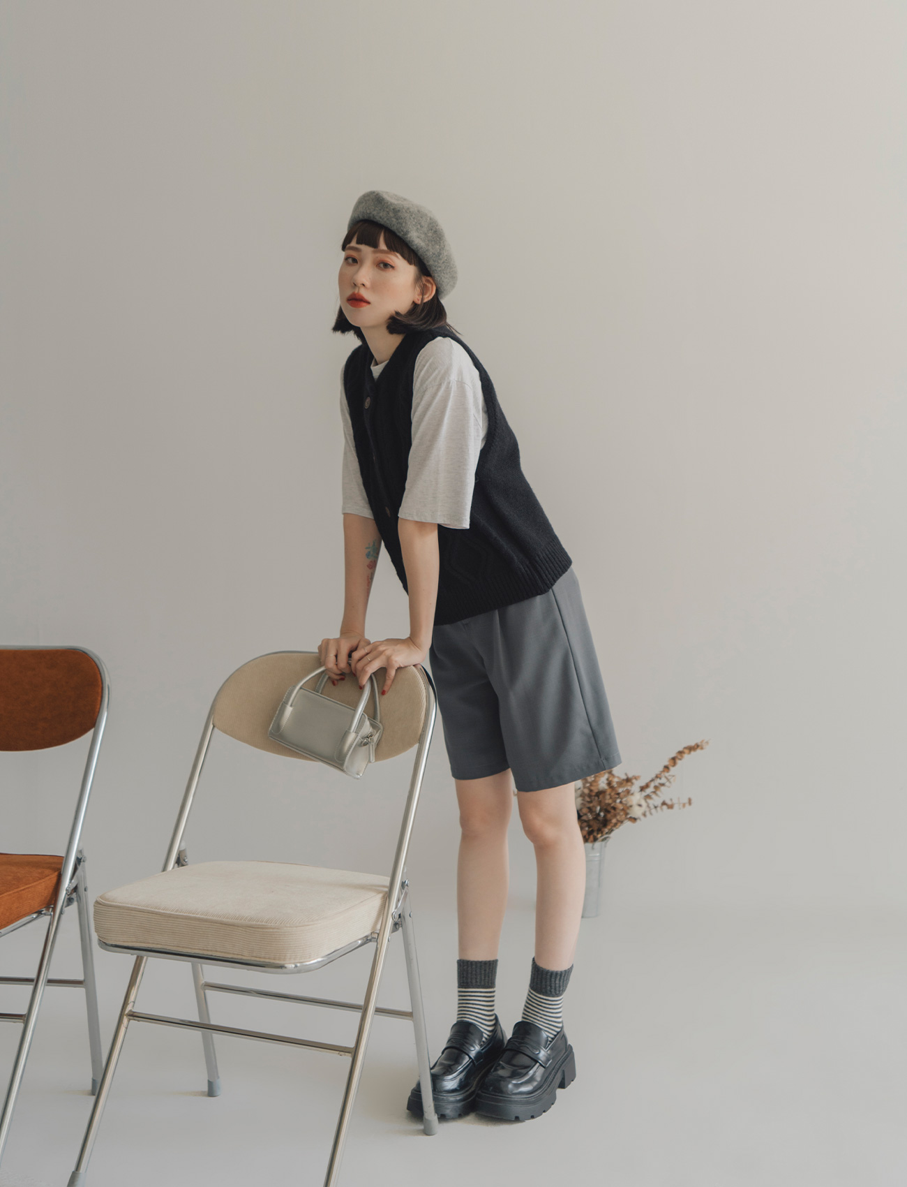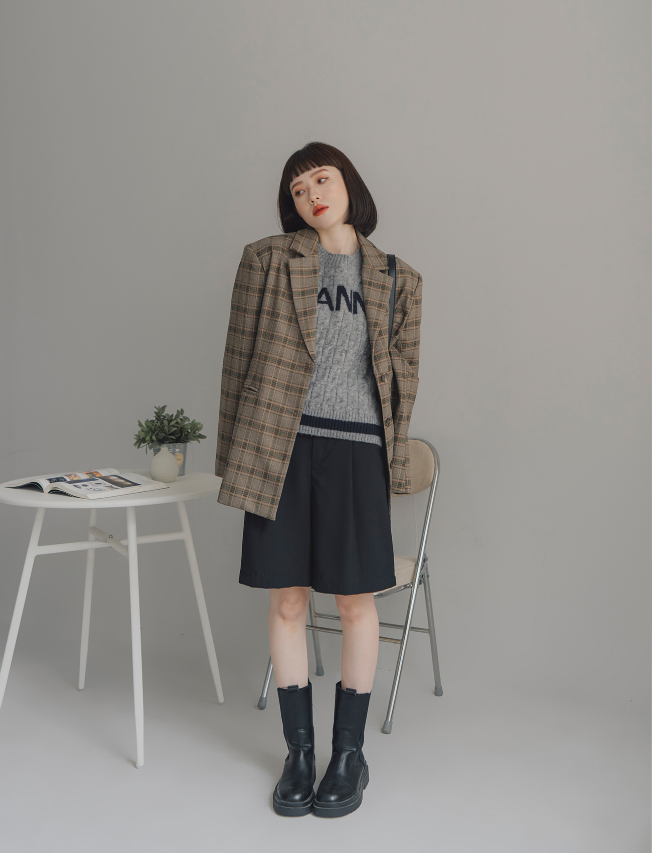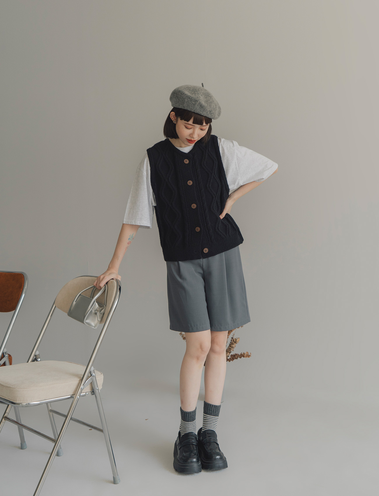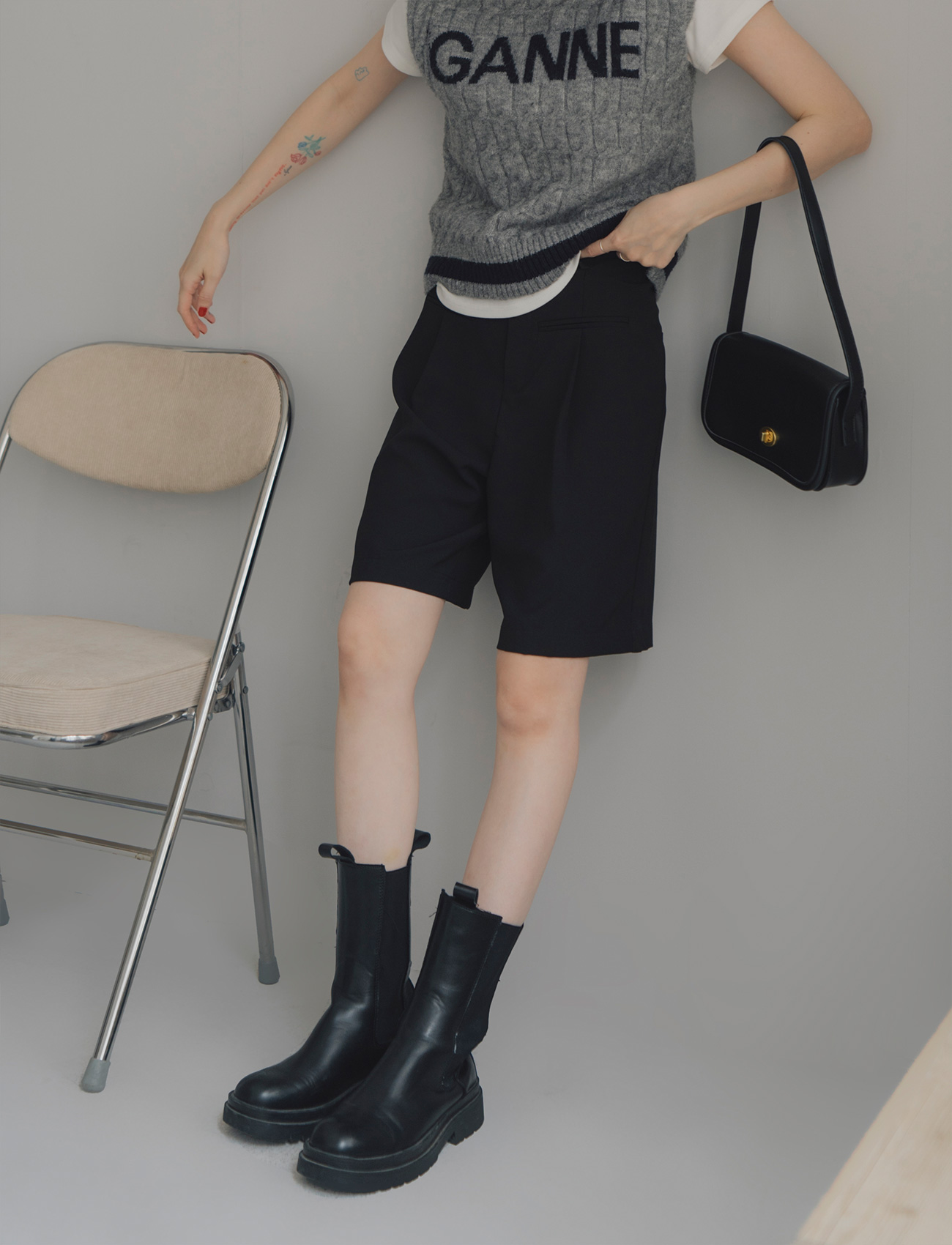 假口袋打摺西裝短褲