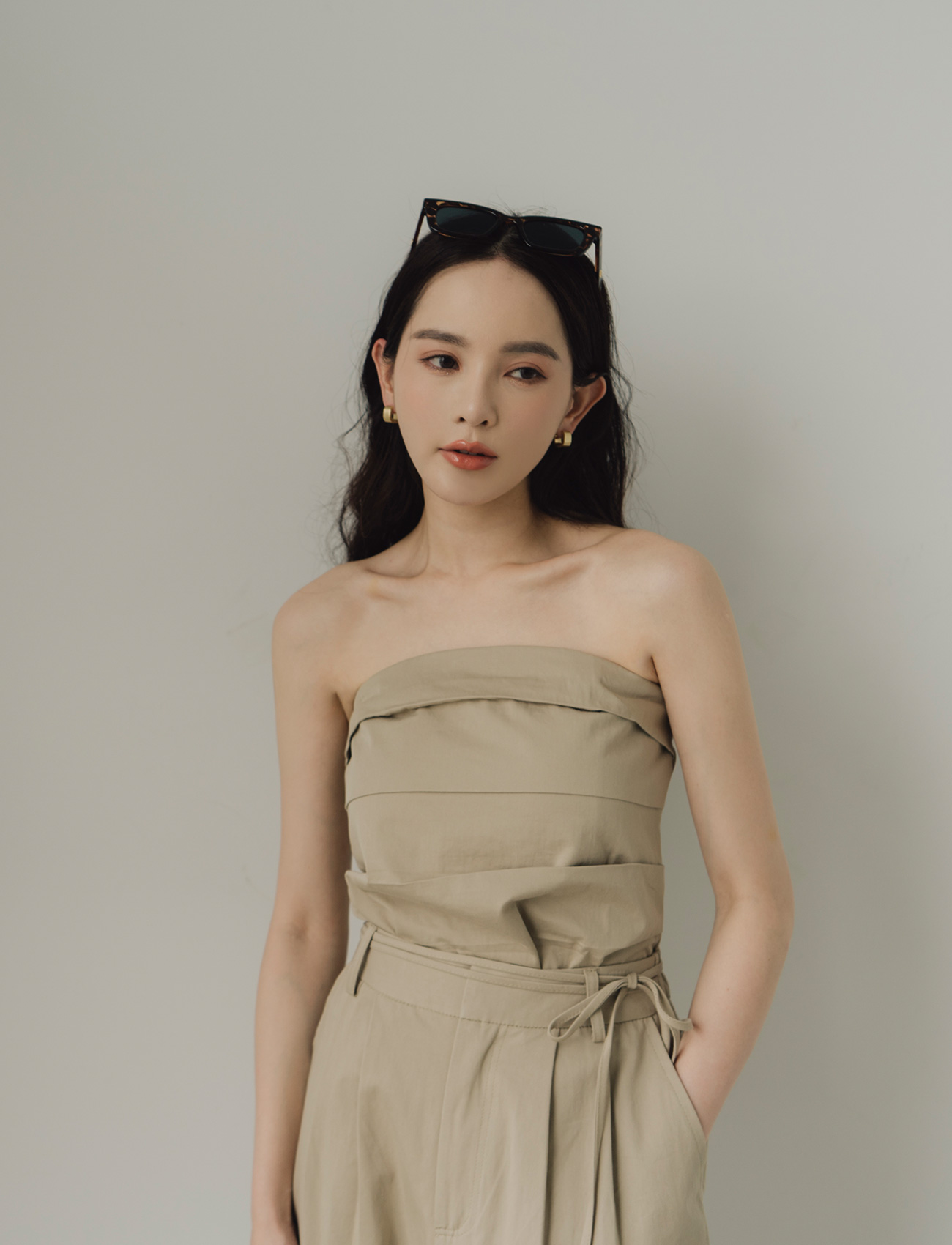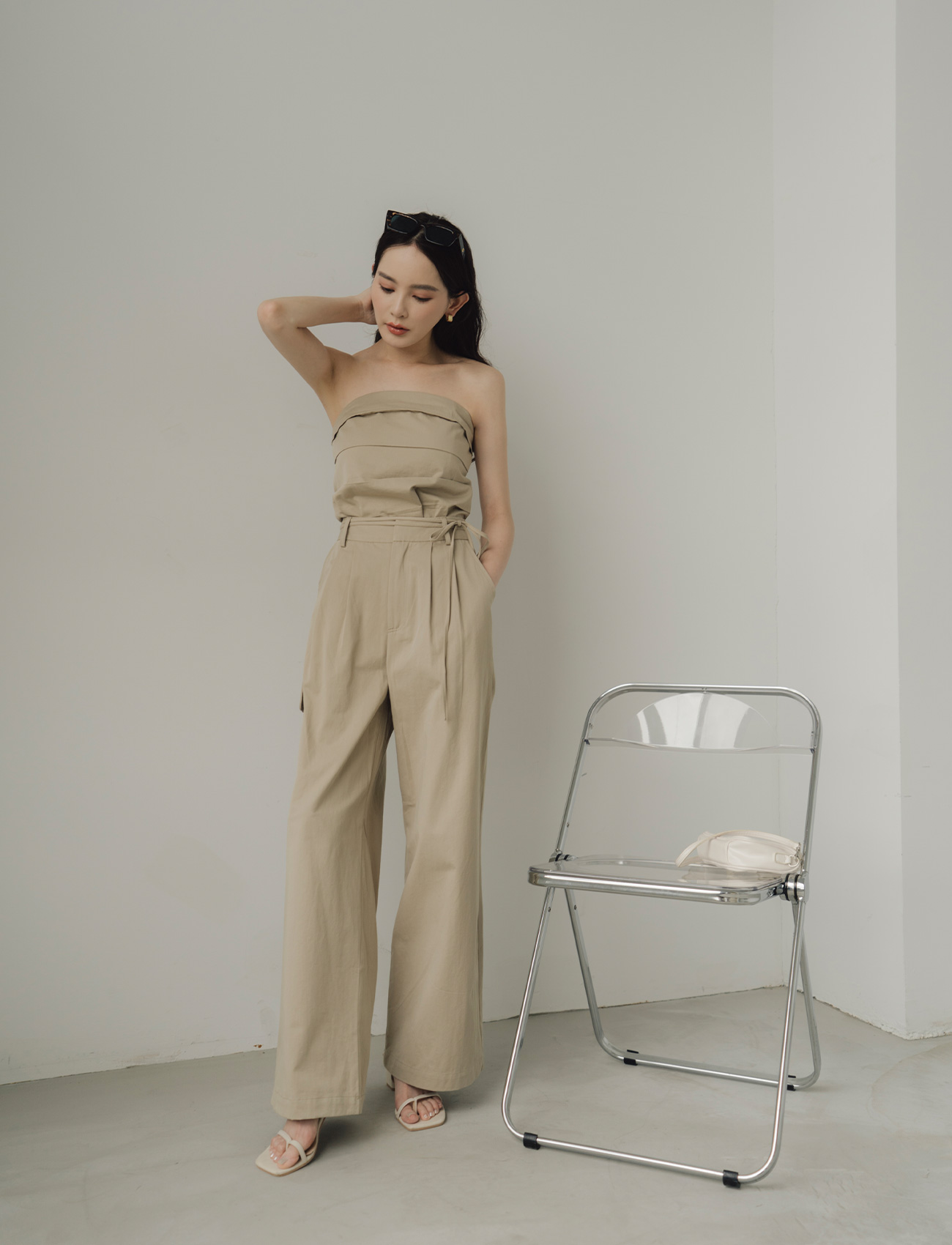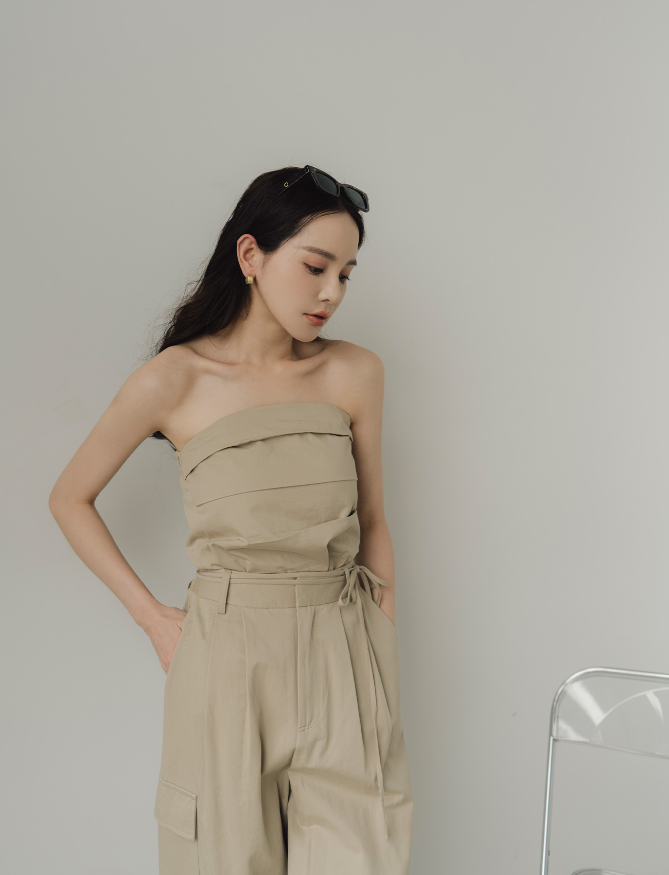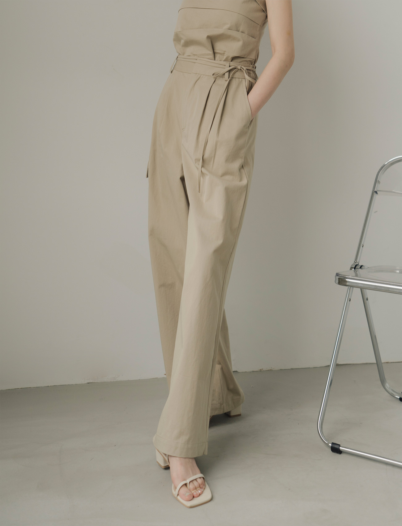 抹胸附綁帶寬褲套裝