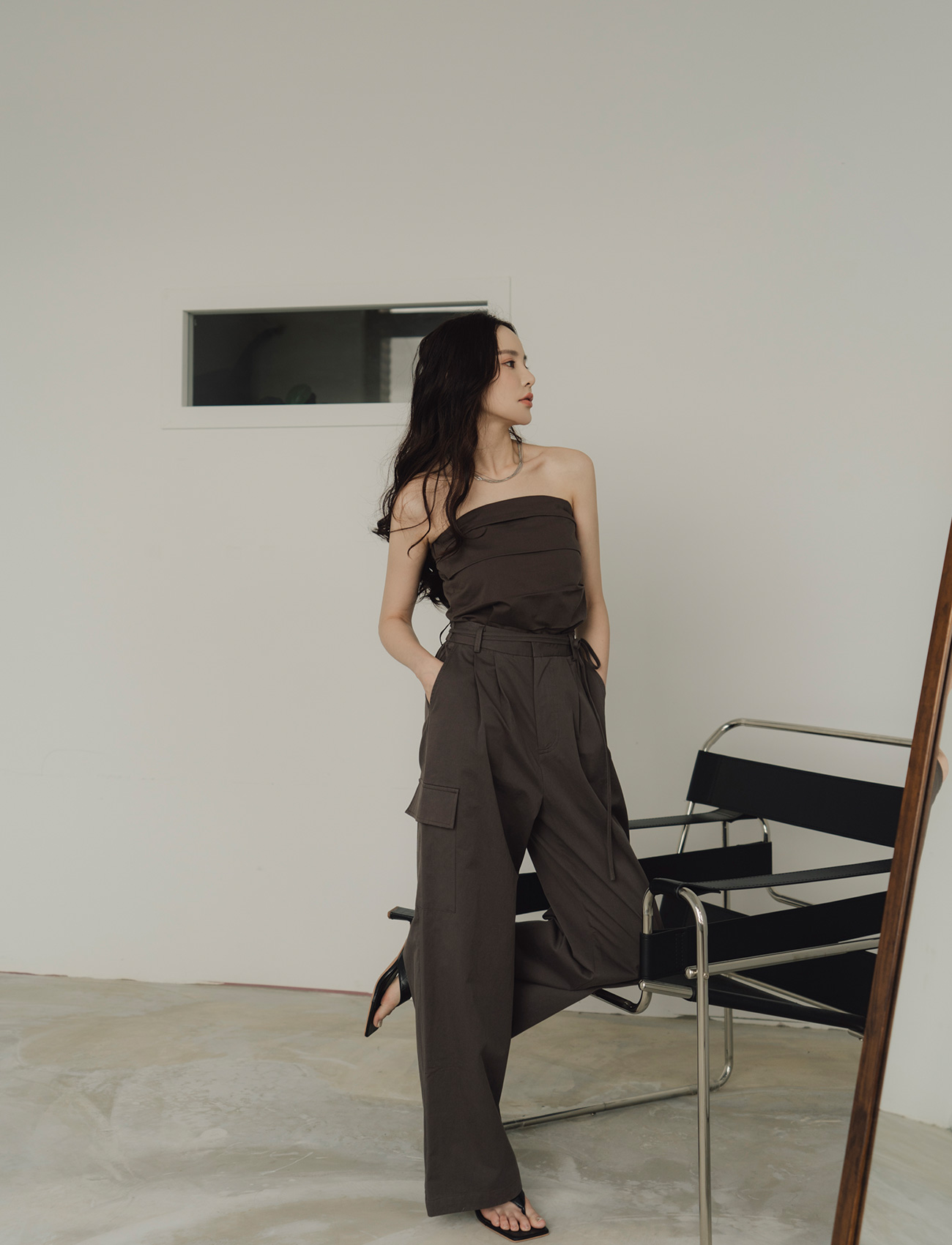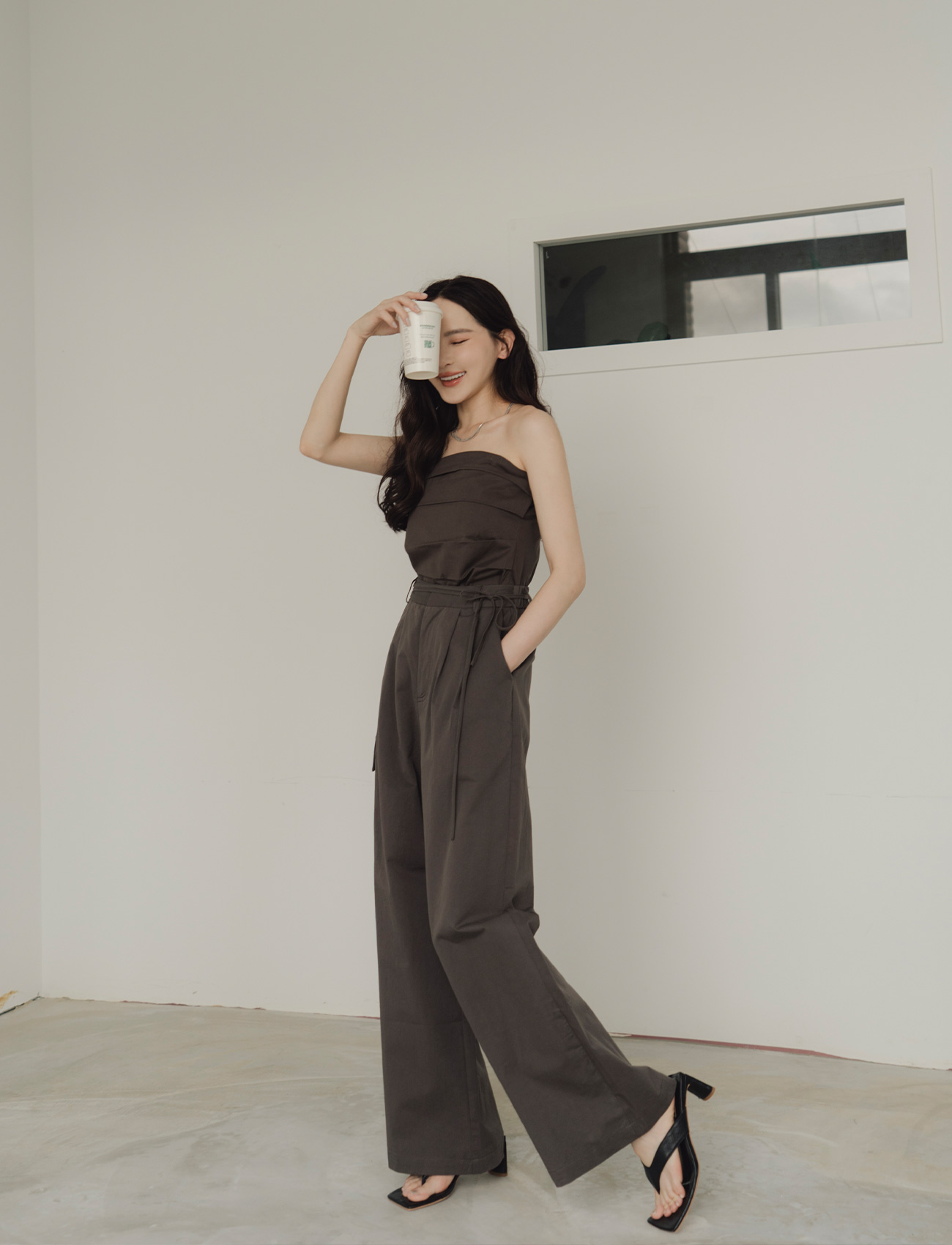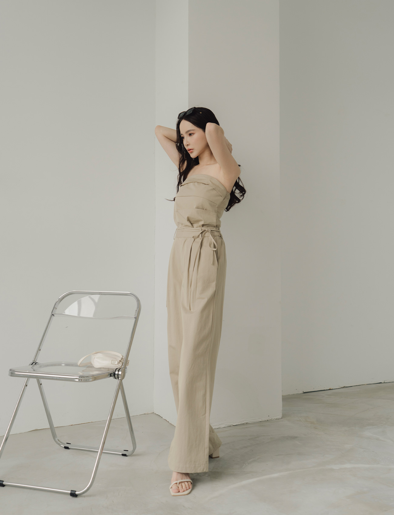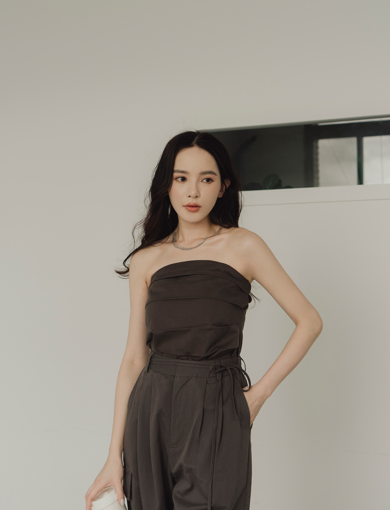 抹胸附綁帶寬褲套裝