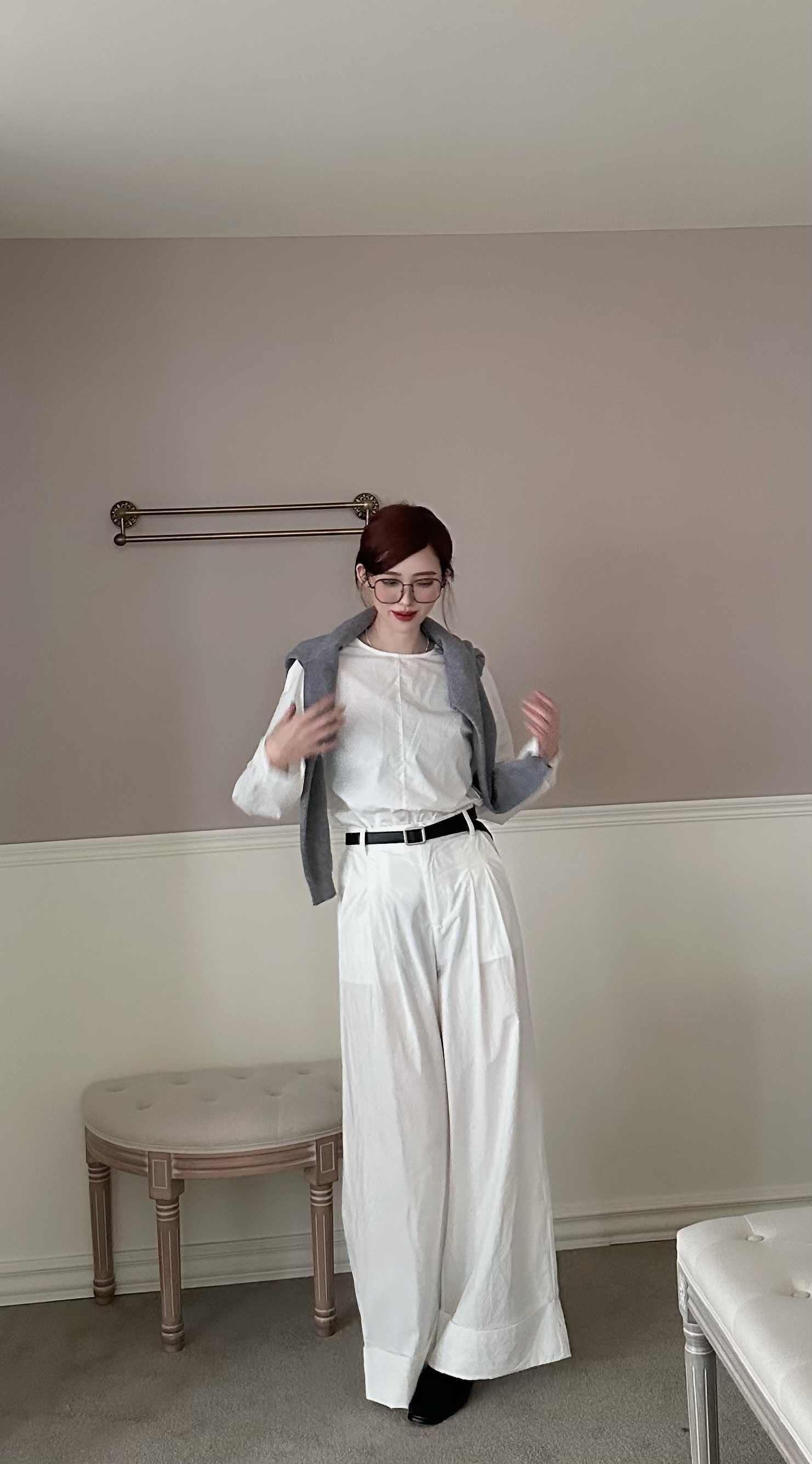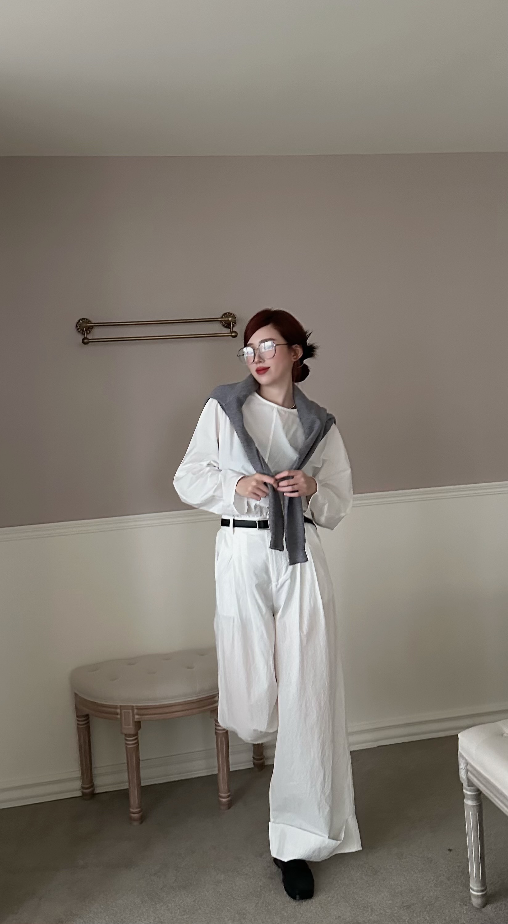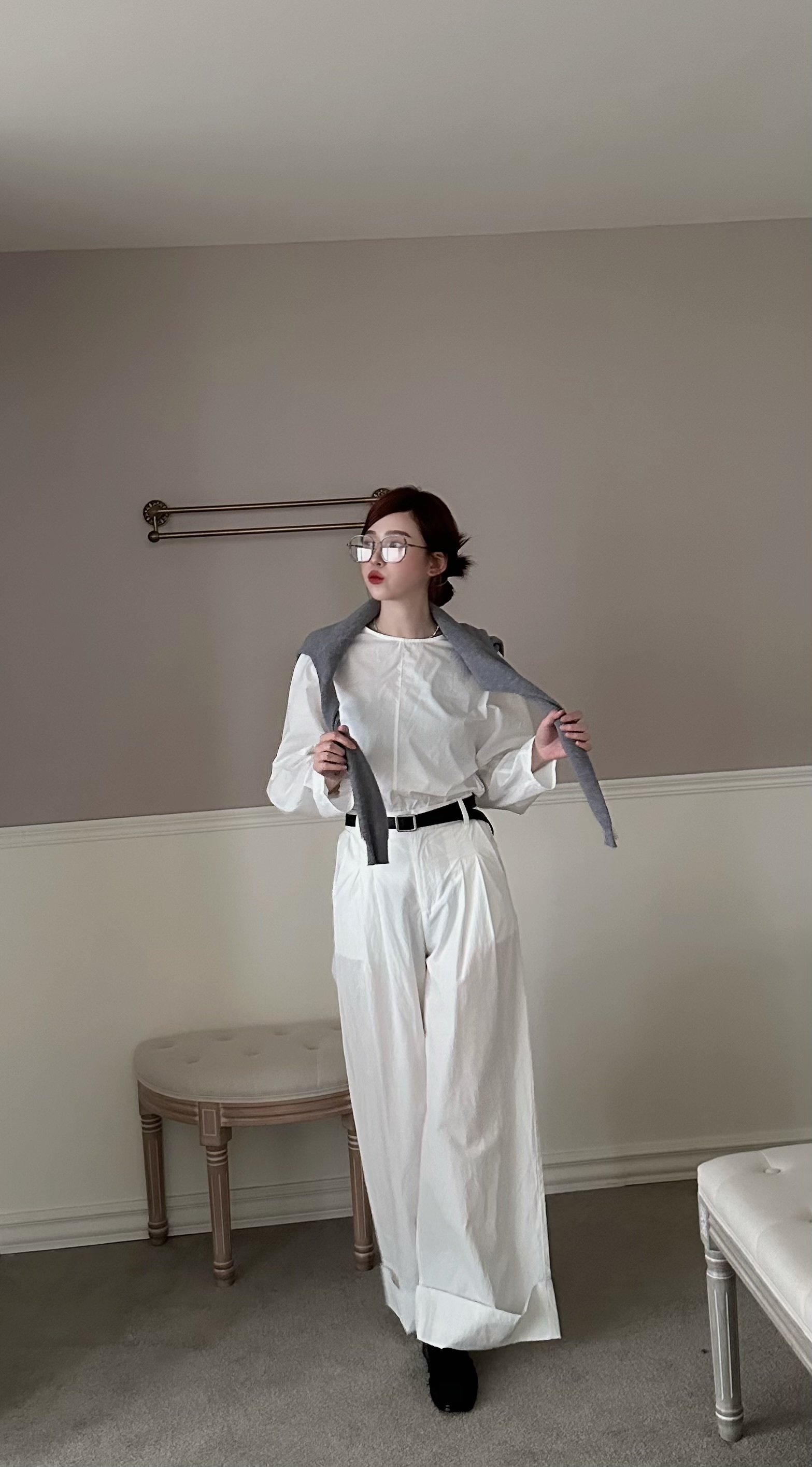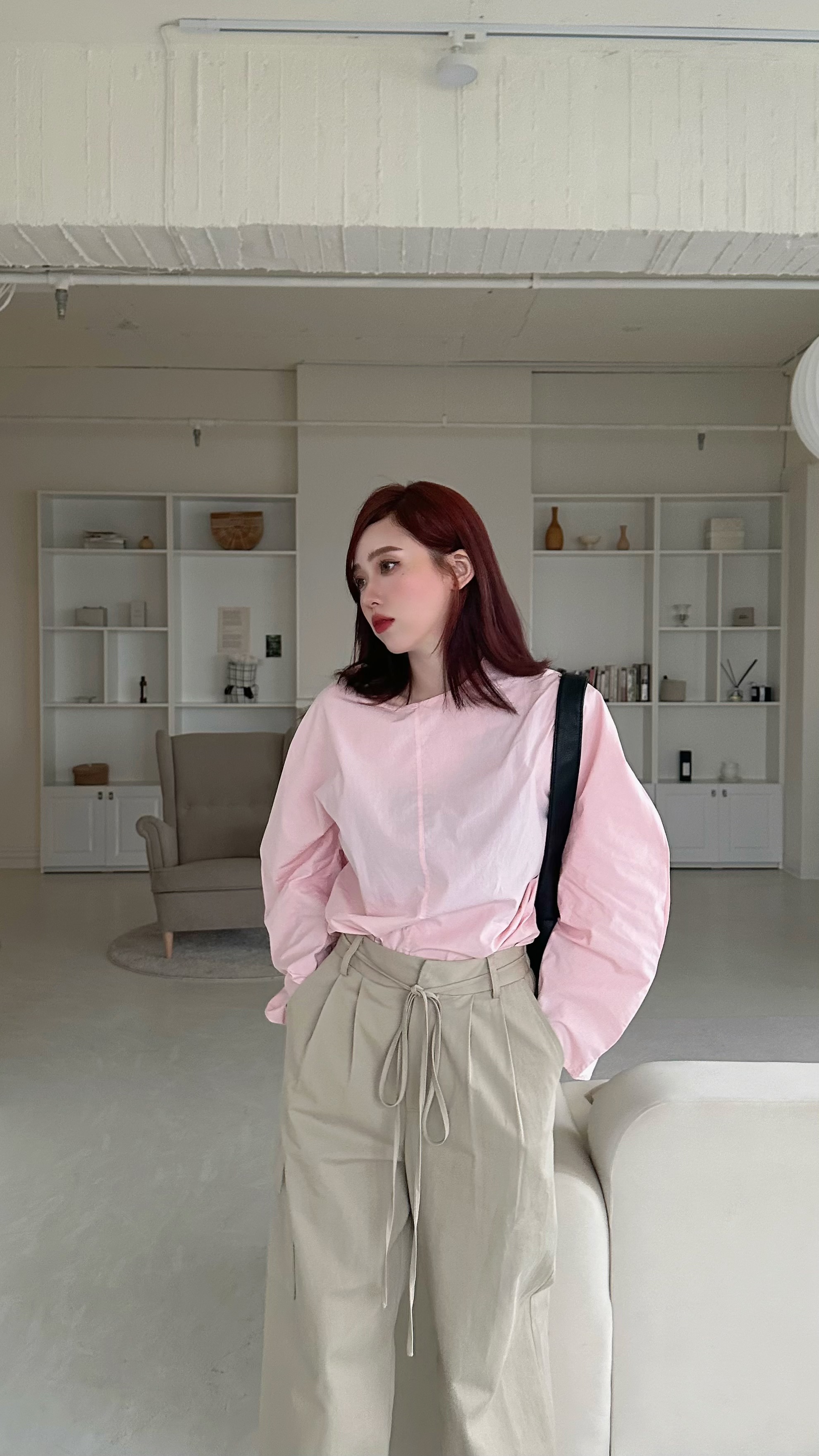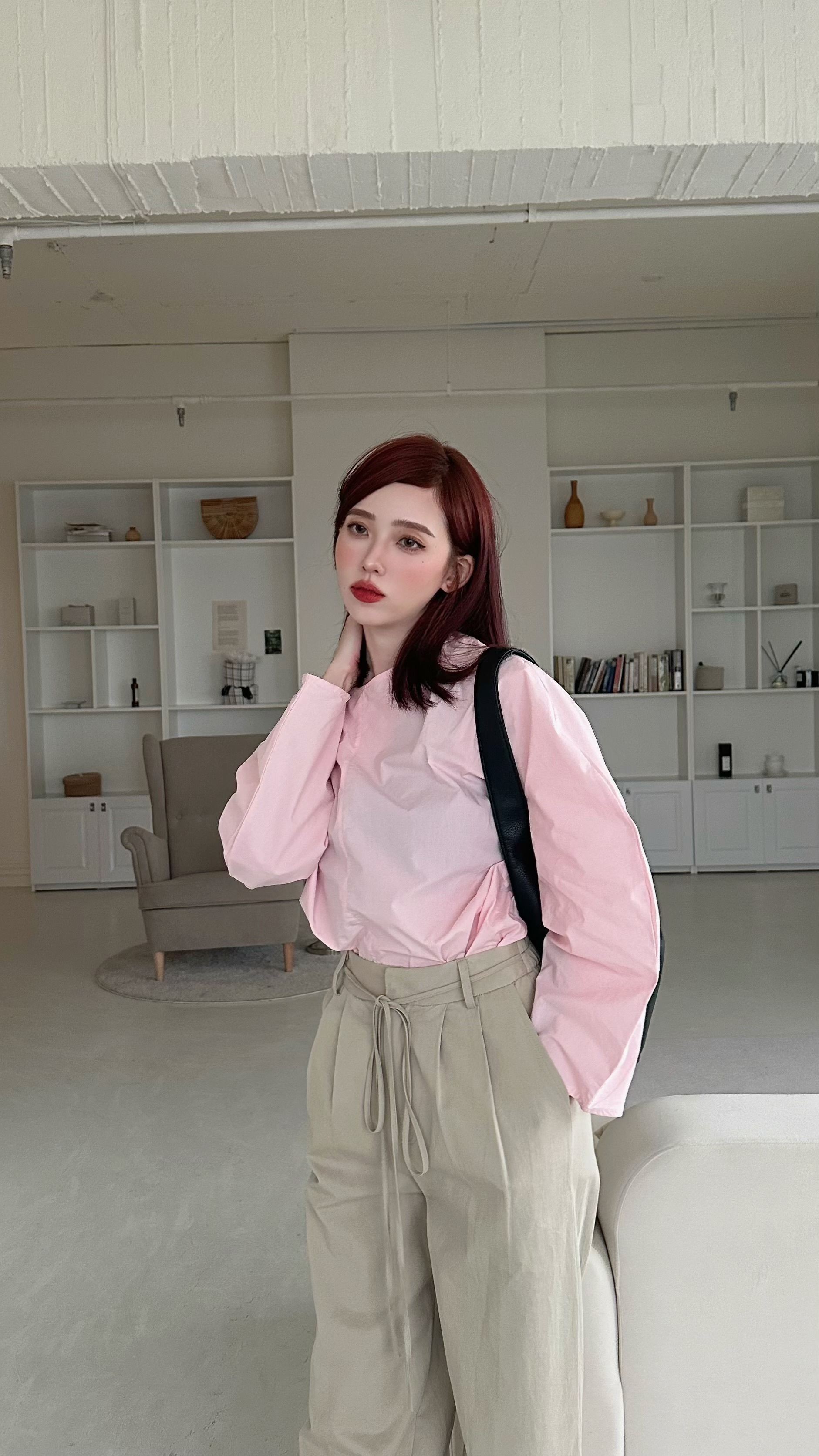 極簡背釦長袖上衣